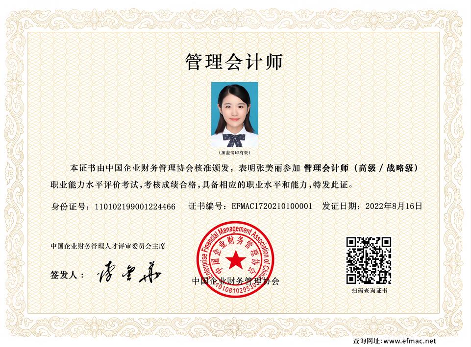2、证书持有人可进入中国企业财务管理人才库(详见人才库入库条件);