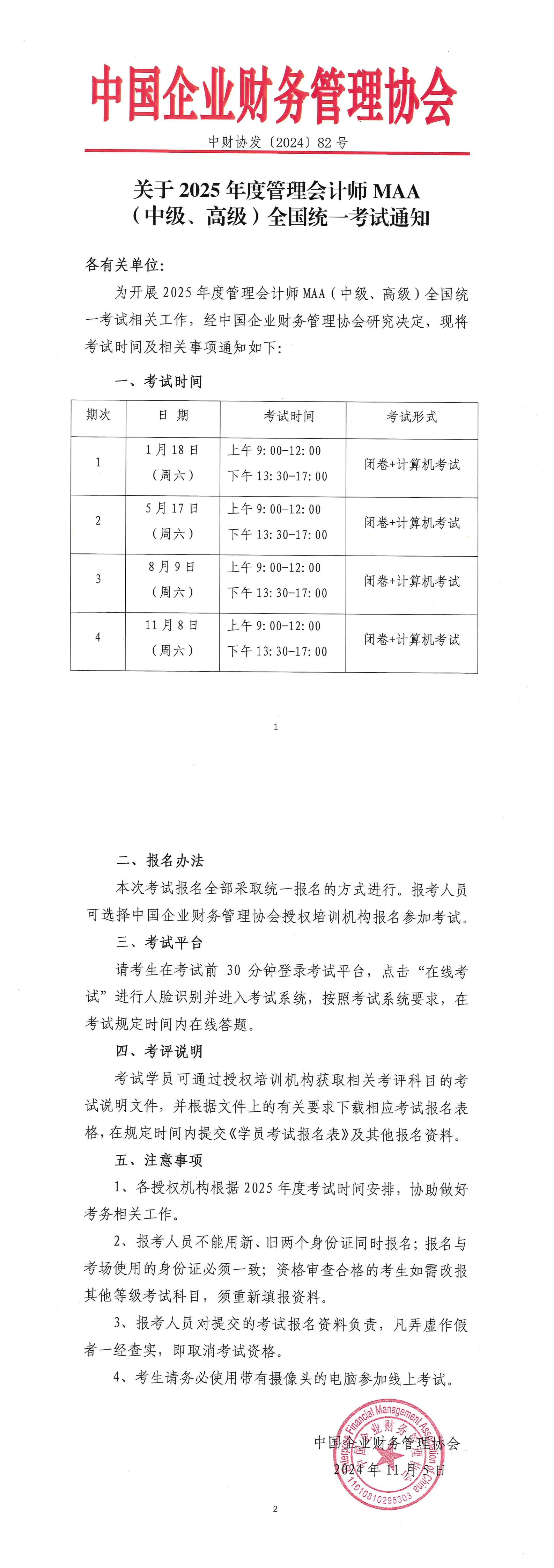 【考试通知】关于2025年度管理会计师MAA(中级、高级)全国统一考试